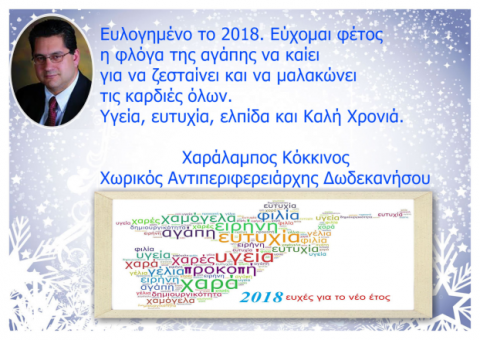 του Αντιπεριφερειάρχη Δωδεκανήσου Χαράλαμπου Κόκκινου για το νέο έτος 2018